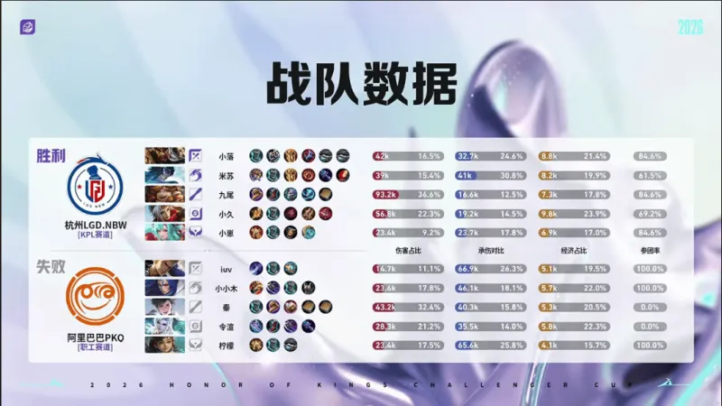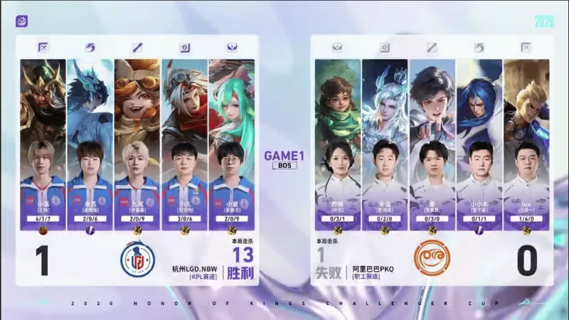 蓝色方:杭州LGD.NBW 红色方:阿里巴巴PKQ